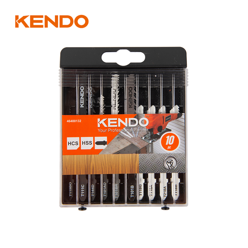 Product Description | • 10-piece set with popular sizes, featuring HCS blades for wood cutting and HSS blades for metal cutting, to meet diverse application requirements • The T-shank design delivers stable grip in the jigsaw, enables quick installation and removal, and eliminates the set-screw mounting hole for enhanced durability and longer blade life • Fully compatible with mainstream jigsaw brands such as KENDO, Bosch, Metabo, Dewalt, Makita, AEG, Festo, Holzher, Kress, Elu, and Skil • Comes in a custom plastic storage case for organized storage, easy transportation, and product protection | |||